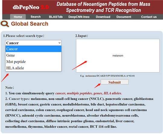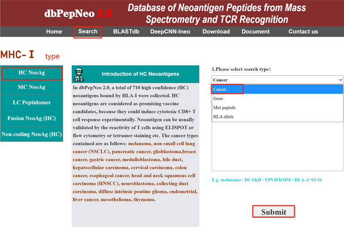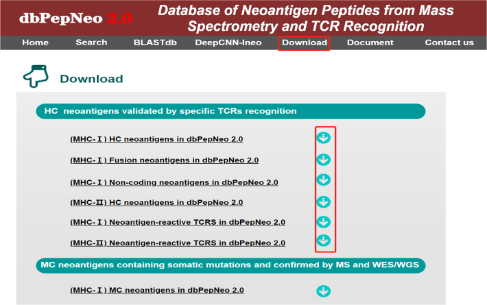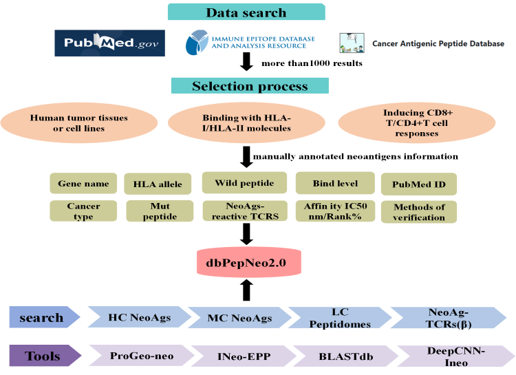 dbPepNeo 2.0 provides a systematic, quality-controlled catalog of validated neoantigen peptides, TCRs, and HLA peptidomes. we provide about 801 HC neoantigens and 864884 low LC peptidomes. Notably, 55 class Ⅱ HC neoantigens and 630 neoantigen-reactive T cell TCRβ sequences were included. Besides, four analytical tools were incorporated into dbPepNeo2.0 to provide useful tools for the immunogenicity of neoantigens. All of these data and tools are intended to support the development of neoantigen-based cancer vaccines and facilitate research in clinical cancer immunotherapy.